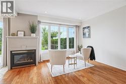Experience unparalleled lakefront living with this stunning Newport Yacht Club residence, offering breathtaking views from nearly every room. Perfectly situated for boating enthusiasts with private mooring just steps from your door, yet with effortless QEW access for commuting. This linked townhome lives like a detached home, sharing no common walls and features parking for six, including a full double garage. The open concept main level is designed for both style and comfort, boasting an updated kitchen with quartz counters, crown molding, hardwood floors, a gas fireplace, and a separate dining room. Sliding doors lead to an expansive patio and a beautifully landscaped 100-foot yard, flowing to a private waterfront patio, ideal for sunrise coffees or evening sunsets over Lake Ontario. Upstairs, find three generous bedrooms, a home office, bedroom-level laundry, two fully updated bathrooms, and a primary suite with a second gas fireplace and private balcony showcasing panoramic lake and Toronto skyline views. Recent upgrades include new counters, sinks, faucets, roof, furnace, AC, light fixtures, and window treatments. A finished lower level with walk-up access adds versatile living space. Rarely available, this exceptional home offers a true waterfront lifestyle where every day feels like a getaway. (id:27)