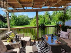 Divine on Devon. Welcome to this beautifully updated 4-bedroom, 4-bath family home backing directly onto Stratford Country Club, offering privacy, peaceful views, and room for everyone on a rare 190' deep lot. Designed with everyday living and entertaining in mind, the backyard features a walk-out to a spacious deck with hot tub and pergola-perfect for family gatherings, quiet evenings, or watching the kids play while enjoying the view. Inside, the main level offers a warm and inviting living room with a stone gas fireplace, a dedicated home office ideal for remote work or homework, main-floor laundry, and convenient access to the attached 2-car garage. The 2017 renovation brought a stunning wrap-around kitchen with granite countertops, oversized refrigerator, double ovens, and generous storage-an ideal hub for family meals and entertaining. Upstairs, the primary bedroom offers serene views of the golf course and a 3-piece ensuite, creating a private retreat. Three additional spacious bedrooms, including two with built-in desks, provide flexible space for children, guests, or study areas. The lower level is perfectly suited for multigenerational living or added income, featuring a self-contained granny suite with kitchen, bathroom, and living room. The remaining basement space offers ample storage, a workout area, or room to create a playroom, hobby space, or teen retreat. A wonderful opportunity to grow, gather, and make lasting memories in this exceptional house. (id:27)