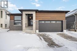 A midsized versatile floor plan that accommodates a young growing family or a fabulous retirement one-floor with a backyard oasis including a ideal-sized, heated, one-year-old saltwater, custom fiber-glass pool for relaxing summers. Modern and elegant through-out, this "mini mansion" shines for everyone. Ideal layout with custom upgrades making this a forever home. The lower spacious level is finished with extra high ceilings and large windows. Enjoy the inviting family room with the second fireplace and includes a full-size slate pool table. This nearly new bungalow will provide you with many enjoyable low maintenance years. If you are in the market for a new home, be sure to see this special home first, in a quiet established neighbourhood near schools, activities and shopping. The present homeowner likes the easy nearby access to the 402 Highway. Pool is 14x30 Azoria fiberglass shell with tanning ledge - programmable LED underwater lighting - programmable Jandy salt water system with cartridge filter - MOOV heat pump wifi compatible - also a robotic cordless vacuum included. Just listed and priced to sell! (id:27)