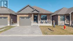 Welcome to Unit 19 at 159 Collins Way, where modern elegance meets effortless living in the desirable town of Strathroy. Just 20 minutes from London, this beautifully appointed detached vacant land condo offers a refined lifestyle steps from Caradoc Sands Golf Course, shopping, dining, and everyday conveniences. The open-concept main floor is designed for both comfort and style, with soaring ceilings and oversized windows that fill the home with natural light. The chef-inspired kitchen features quartz countertops, a striking backsplash, a large island, and premium stainless steel appliances, an ideal space for entertaining or simply enjoying daily life. The living room centers around a cozy gas fireplace and flows seamlessly to the dining area and out to the covered back deck. Overlooking peaceful farmland, this outdoor retreat offers a tranquil setting for morning coffee, evening wine, or gatherings with friends. The primary suite is a true sanctuary, boasting a generous walk-in closet and a spa-like ensuite with quartz finishes and a glass rainfall shower. A second bedroom on the main floor provides versatility for guests or a home office, while a dedicated laundry room and inside entry to the garage ensure everyday ease .The fully finished lower level extends the living space with a bright and spacious family room, a third bedroom, and an additional full bathroom, creating the perfect setting for relaxation or hosting overnight guests. Additional highlights include 5 high end appliances and low monthly condo fees of just $85.00, offering peace of mind and low-maintenance living. This move-in ready home perfectly balances elegance, functionality, and lifestyle ideal for golf enthusiasts, downsizers, or anyone seeking a turn-key property in a vibrant community. Book your private showing today and experience all that this exceptional residence has to offer. (id:27)