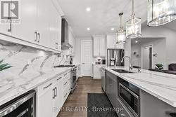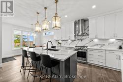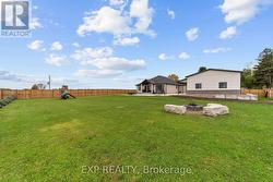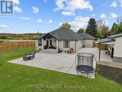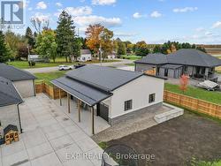 Set on an almost three-quarter acre lot just minutes from Strathroy, this remarkable property showcases a brand new 30x40 ft heated and air-conditioned shop with 13-foot ceilings, a large covered patio, matching house siding, and a steel roof designed for lasting durability. Built beside the home to connect seamlessly with the massive concrete patio, it creates a functional outdoor living space perfect for entertaining, relaxing, or watching sunsets over the open fields that provide full privacy through the summer and fall. The property is fully fenced with privacy trees already planted, features a gas line for the barbecue, and offers both a covered front and back porch for year-round enjoyment. Inside, the home combines craftsmanship and comfort with 10-foot ceilings in the entry, a vaulted living room anchored by a stone gas fireplace, and engineered hardwood throughout. The kitchen includes a quartz backsplash, pot filler, extra large island, and wine fridge, while transom windows, 9-foot bedroom ceilings, and a tray ceiling in the primary suite add architectural character. The primary wing features a luxurious ensuite with a soaker tub and a spacious walk-in closet, privately tucked away from the main living areas. The oversized three-car heated garage is equipped with a gas heater, and the basement offers exceptional versatility with two large bedrooms, a full bath, rough-in for a bar or second kitchen, and a conduit for a projector. Additional details include a generator hook-up, exterior security camera system, soffit outlets for Christmas lights, and a large mudroom with custom built-ins, quartz bench top, and kick-close drawers. The home runs on natural gas and well water with a reverse osmosis system, and Bell Fibe Internet and TV provide modern connectivity. Located on a country road with a dead-end street nearby for walking and biking, this home is only five minutes to Strathroy and thirty minutes to London. (id:27)