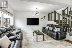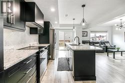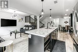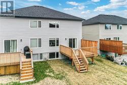 New Sudbury! Move right in!This beautiful gray stone and siding home is located in a newer New Sudbury neighbourhood and offers 3 bedrooms, 3 bathrooms, and a bright, open-concept main floor ideal for modern living.The kitchen features dark-stained cabinetry, generous counter space, and stainless steel appliances that any home chef will appreciate, all set against a crisp white backdrop. The open layout keeps guests connected in the dining and living areas, while patio doors off the main living space lead to a spacious deck and backyard—perfect for entertaining or relaxing outdoors. A convenient mid-level family room or play area is light and welcoming, thanks to the home’s many large windows. Upstairs, you’ll find all three bedrooms, including a primary suite with a 3-piece ensuite and two closets. A full 4-piece main bath and second-floor laundry with a stackable washer and dryer add everyday convenience.A 2-piece powder room is located just off the front entrance. The attached garage is accessed through the stairway leading to the unfinished basement, which offers excellent potential for one or two additional bedrooms and is already plumbed for a fourth bathroom. Flooring throughout includes laminate, tile, and cozy carpet. Ideally located close to playgrounds, schools, shopping, and restaurants—everything you need is just minutes away.Floor 5 years remaining on New Home Warranty. Floor plans at the end of the photo gallery. If this is where you’re going, we can take you there. (id:27)
