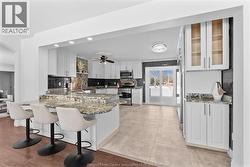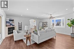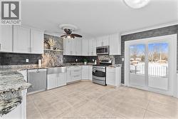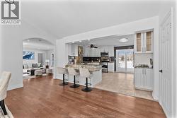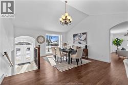 One-of-a-kind, family-sized raised ranch located in a desirable Tecumseh neighbourhood. This home features a unique layout with a two-storey addition (approx. 5 years old), offering 4+1 bedrooms and 3 full bathrooms. The main living areas showcase dark hardwood flooring, limestone, and granite finishes. Additional highlights include a gas fireplace and large sliding patio doors leading to a wrap-around deck with gas BBQ hookup. The home comes complete with stainless steel appliances, including a wine fridge. Exterior features include a circular driveway providing ample parking and convenient access. Notable updates include vinyl windows (approx. 10 years), furnace and central air (approx. 10 years), and roof (approx. 5 & 10 years). Pre-inspection report available. Immediate possession available. (id:27)