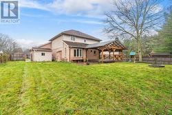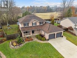 Desirable Family Home in Dorchester! This property is strategically located on a quiet crescent with an incredible, oversized pie-shaped lot backing onto an open field for unmatched privacy. Bright eat-in kitchen, formal dining/living room, and main floor family room with gas fireplace. Spacious primary suite with walk-in closet and ensuite with jetted tub. Main floor mudroom with laundry, carpet free home, double attached garage with six-car driveway, and a massive covered deck perfect for hosting and enjoying the exceptional fully-fenced backyard. Located in a quiet family-friendly neighbourhood, surrounded by farm fields & close to the 401. Basement has been remediated (Nov 2025) with transferable warranty from Best Plumbing & Drainage Contractors. See documents section. Power of sale - property sold as-is. (id:27)