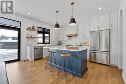 Built in 2022, this beautifully upgraded two storey home built by Royal Oak offers modern design, thoughtful features, and exceptional value. From the moment you arrive, the home's curb appeal and grand entryway set a welcoming tone. Just off the foyer, a dedicated main floor office provides the perfect space for working from home. The open concept main floor is designed for both everyday living and entertaining, featuring 9 foot ceilings and seamless sightlines from the living room to the dining area and kitchen. A gas fireplace with built-in shelving adds warmth and character to the living space. The stylish kitchen boasts a herringbone tile backsplash, gas range, designer range hood, and a convenient butler's pantry complete with bar fridge, lower cabinetry, and open shelving, ideal for keeping the main kitchen clutter-free. Additional main floor highlights include a laundry room with built-in cabinetry and quartz countertops for added functionality. Upstairs, the open to below layout offers views of the entryway and front yard, creating a bright and airy feel. The spacious primary suite features a luxurious five piece ensuite with a soaker tub and a walk-in closet with custom built-ins. Two additional bedrooms and a full four-piece bathroom complete the upper level. The lower level is framed by upgraded ceiling height, four egress windows, and a roughed-in bathroom, ready for future development to suit your needs. Outside, enjoy a fully fenced backyard, a 10' x 16' storage shed, and a covered stamped concrete patio, perfect for relaxing summer evenings. Skip the wait and cost of building, this move in ready home offers quality upgrades and modern living in a desirable community. (id:27)