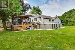 Welcome to this well-appointed raised ranch offering the perfect blend of country living and city convenience. This 3-bedroom home features a primary bedroom on the main level, located just a few steps up from the foyer, complete with a large walk-in closet and access to a spacious bathroom with jacuzzi tub and walk-in shower.The open-concept kitchen, dining, and living area is filled with natural light and overlooks the just-over-half-acre lot backing onto farmland, offering peaceful views and privacy.The lower level includes two additional bedrooms and a large family room, ideal for kids or a private retreat. A separate mid-level houses the foyer, mudroom/laundry, convenient half bath, and direct garage access, creating excellent functionality and separation of space.The double-wide, double-deep garage provides room for up to four vehicles or recreational toys and features a rear door to the fully fenced backyard. Enjoy summer evenings on the partially covered deck, relax by the firepit with sunset views, or cool off in the above-ground pool. Additional storage is provided by a large shed. Located minutes from London on a paved road with quick access to Hwy 401. Heated by forced-air propane. (id:27)