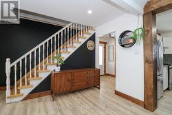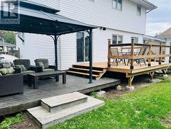 Discover this charming modern farmhouse-style family home, situated in a delightful residential neighbourhood, with easy access to Highway 101 and nearby amenities. Step through the welcoming side entrance to discover built-in storage that's ideal for busy family life. The main floor invites you in with an open-concept kitchen, dining, and living space, complemented by a convenient two-piece bathroom. The kitchen offers a natural gas stove, spacious island, fridge, dishwasher, and microwave. Cozy up in the living room featuring built-in shelving around the fireplace. Patio doors open to a partially fenced backyard oasis, complete with a deck & gazebo (built in 2024). Upstairs, three generously sized bedrooms await, finished with beautiful hardwood flooring. The stunning modern four-piece bathroom features ceramic tile, shiplap-style accents, and elegant pendant lighting. A versatile sitting area offers the perfect spot for a home office or flexible space.The finished basement hosts a cozy rec room, a three-piece bathroom featuring a walk-in shower, a dedicated laundry area, and a storage room.Outside, enjoy the convenience of a double-wide interlock brick driveway, oversized carport, and a spacious 24' x 24' heated detached garage. Natural gas forced air furnace installed 2025. (id:27)