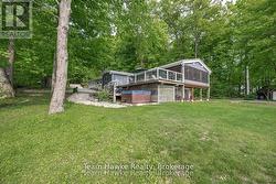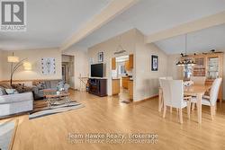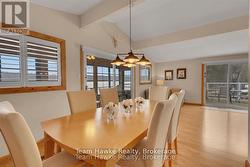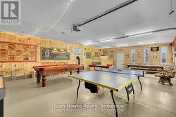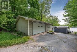 Escape the city and embrace lakeside living! Located 15 minutes from Penetanguishene and under 2 hours from the GTA, this exceptional four-season lakefront home is nestled on a beautifully landscaped 3/4 acre lot with hundreds of feet of private shoreline. The calm, swimmable waters and shallow sandy entry create warmer temperatures that are ideal for families and swimming; a highly sought-after feature compared to larger, busier lakes. Offering just under 2,400 square feet of finished living space, this spacious and thoughtfully designed home features 3 bedrooms and 3 bathrooms, perfectly suited for full-time living or a luxury recreational retreat. The main-floor primary suite includes a private ensuite and custom built-in wardrobes, while the open-concept living and dining areas flow seamlessly into an enclosed, lake-facing sunroom with southeastern exposure - the perfect place to enjoy morning light and lake breezes. Sunroom windows can be removed for summer use, with screens remaining in place for convenience. The kitchen offers generous counter space, ample cabinetry, and a built-in dishwasher, making it ideal for entertaining family and guests. The walkout basement features an additional bedroom and two versatile bonus rooms, perfect for guests, a home gym, office, or hobby area. Outdoor living here is equally impressive. Relax in the hot tub, gather around the fire pit, or enjoy games on the bocce ball court, or horseshoe pits located on the point. The fully insulated and heated detached double garage (approximately 800 sq ft) is an entertainer's dream, complete with a bar, table games and lounge, making it the ultimate year-round hangout space. Additional highlights include a private dock, large paved driveway, forced-air gas heating, and central air conditioning for year-round comfort. Best of all, this turnkey waterfront property is being sold fully furnished, simply bring your swimsuit and start enjoying lake life from day one. (id:27)