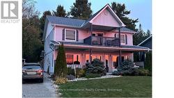 Waterfront living on Georgian Bay with views from almost every room. This bright, well-designed home offers exceptional natural light and a layout ideal for both everyday living and entertaining. The kitchen features new quartz countertops, stainless steel appliances, and a large island. The living room includes a natural gas free-standing fireplace with a walkout to the front porch. A formal dining room, currently used as the primary bedroom, captures stunning water views, while a spacious rear foyer provides excellent storage and functionality. The 4-piece bathroom, utility room and a bedroom finish out the main floor. Upstairs are three bedrooms, including a primary with a private ensuite and a shared ensuite for the remaining two bedrooms. The upper level also offers a living space with panoramic lake views, a walkout to a balcony, and a kitchenette with new cabinets and counters. Abundant storage throughout with numerous closets. The backyard is fully fenced at the back and sides and features a hot tub under a pergola, multiple seating areas, and a large shed/workshop. Enjoy your own private dock and shallow water entry with direct access to the sparkling waters of Georgian Bay. This property is set up for entertaining in a year-round playground, offering the ideal backdrop for gatherings, relaxation, and outdoor adventure. Located just minutes from Penetanguishene and close to amenities, scenic mountain-bike routes, walking trails, and the expansive Awenda Provincial Park. Summer brings endless boating through the renowned 30,000 Islands, while winter offers exceptional snowmobiling with OFSC trails nearby. The fishing is excellent year-round, whether you're casting from the boat just offshore or setting up for ice fishing in the colder months. (id:27)
