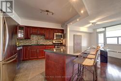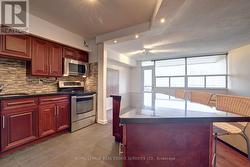 Convenient Location In Beautiful Etobicoke - This spacious suite offers 1,050 Square Feet. This bright 2 Bedroom Unit W/ Parking & Locker. Updated w/ gorgeous Open Concept Kitchen w/ custom cabinetry, granite counters, large island, breakfast bar, Newer Flooring Throughout... Large Balcony W/ East Views of Pool Area, Tennis Court, 427 & Toronto's Skyline from Master. EnSuite Laundry/Pantry Offers Lots Of Storage Space. Easy access to Highways 427/401/Qew, 10 Min To Airport, 25 Min Drive To Downtown Toronto, Close To Grocery shopping, Sherway Gardens Mall, Centennial Park. Public Transit stops directly in front of building. Great amenities include gym, swimming pool, tennis court, kid's playground, BBQ area in forest & more... Well managed building. (id:7525)