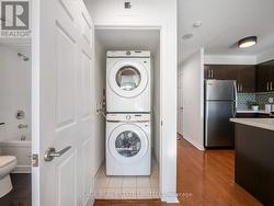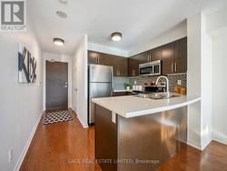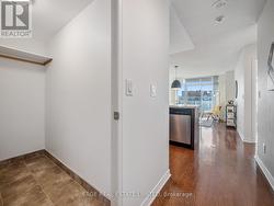 Urban Chic- Palais at Port Royal Place! Bright, modern and effortlessly functional, this condo is a great first step into city living. This 1 bdrm, 1 bath layout makes smart use of space with a sunny, southern exposure and floor-to-ceiling windows that keep the vibe light and airy all day long. The open-concept design is perfect for everyday living or hosting friends. Featuring a sleek kitchen with granite countertops, stainless steel appliances and a breakfast bar. Hardwood floors throughout are a real perk, while the spacious bedroom with a double closet keeps things comfortable. The added bonus of the extra-large ensuite storage room means daily life is clutter-free! Brand new full size washer and dryer too. Step out onto the large private balcony and take in city skyline and lake views-ideal for morning coffee, sunset hangs or winding down after work. Secure underground parking and an additional locker are included. Standout amenities including 24-hour concierge, a fitness centre and indoor pool, and stylish shared spaces to relax, work or entertain. Located in the heart of Islington Village, you're just steps to the TTC subway, Kipling GO Station, Bloor Street shops, cafés, and essentials. Plenty of green space nearby, take your picnic to Michael Power Park, or visit the sports fields, tennis & pickle ball courts of Tom Riley Park. Connected, walkable and move-in ready- make this exceptional condo your new home! (id:27)