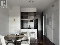 A spectacular condo at the renowned Tridel building - welcome to unit 2603. This west-facing condo is thoughtfully designed, with functionality top of mind. Located in a family-friendly and well connected neighbourhood, with transit options just steps away. This home features a spacious kitchen with enough storage for all your kitchenware & more. It is not your average condo kitchen. Featuring granite countertops, full sized stainless steel appliances, and tall ceilings. Floating shelves with under-mount lighting serve as both a decorative and practical design element, with clear sight lines into your open concept dining and living room space. Enjoy the view of the city and lake from your living room, or from your large balcony. Throughout the day, you'll have plenty of natural light from a west-facing view that will keep your home well lit and bright. The primary bedroom features a spacious walk-in closet, and large windows. And finally, you have a beautiful den. Perfect for an at-home office, cozy library, guest room, or second living room - the option is there for you to make it your own creative space! And the best part, is this condo is located in a fabulous building, where the neighbour-friendly culture is evident. With fabulous amenities including an indoor pool, large gym, party room, concierge, visitor parking and more - you don't want to miss out on this incredible opportunity. 1 underground parking and locker included. (id:27)