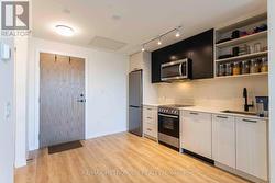 (Open house every Sat/Sun 2-4pm by appointment only.) Welcome to Stockyard Condos by Marlin Spring Developments nestled in the heart of The Junction a prestigious Toronto neighbourhood. Located on the 3rd floor with a South exposure, this spacious 1 bedroom + den suite offers 590 sq ft of living space, tons of natural light, modern finishes, laminate flooring throughout, ensuite laundry and an open concept balcony to unobstructed city views. The inviting open-concept living and dining areas are perfect for relaxation and entertainment. Enjoy the kitchen space thats equipped with contemporary stainless steel appliances, quartz countertops, and a stylish backsplash. The spacious bedroom features a large window and a sizeable closet space. An open-concept L-shaped den offers versatility for a home office or guest accommodation. Parking and locker are available at an additional cost. Vacation possession guaranteed. Building amenities include a 24-hr concierge, gym/exercise room, party/meeting room, outdoor terrace with BBQ area, visitors parking, electric car charging stations, games room and more. Conveniently located near TTC public transit, Stockyards Village, grocery & shopping plazas, restaurants, cafes, parks, banks & other local area amenities. Building allows short-term rentals. Vendor Take Back (VTB) available. (id:27)
