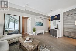 Rarely offered south-facing corner residence at Ocean Club! Breathtaking, unobstructed views of the Lake and Toronto Skyline. 2 bed, 2.5 bathroom layout features nearly 1000 Sq ft. of interior space + an exceptional 330 sq.ft. wrap-around balcony - creating a seamless indoor-outdoor experience rarely found in condo living.Both elegant and functional - this sought-after split bedroom layout is framed by floor-to-ceiling windows providing ample natural light. Recently completed custom kitchen remodel (approx. $50,000) elevates the space with a chef-inspired design, featuring an enlarged waterfall island and built-in appliances.Primary suite offers a walk-in closet and a spa-like ensuite, while the second bedroom is enhanced with a custom closet system & it's own ensuite. A 2 pc powder room is placed near the entrance, separate for guests. Situated in the prestigious Humber Bay Shores waterfront community, residents enjoy direct access to scenic trails, parks, cafés, grocery, TTC service, and quick connectivity to the Gardiner & downtown Toronto. Lifestyle-driven location - ideal as a luxury principal residence or a high-quality turn key investment. This suite may be offered fully furnished, presenting a rare turn-key opportunity for discerning end-users or investors alike. (id:27)