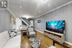 Welcome to 4 King Edward Avenue, 3 bedroom, semi-detached home set on a professionally landscaped 126ft deep lot is in move in condition and located in a quiet, family friendly neighbourhood known for its community feel and everyday convenience. This well-cared-for residence in a prime Toronto location is in move-in condition and offers a functional layout with 3/4 inch oak hardwood flooring throughout both the main & second levels. This home presents an excellent opportunity for buyers to update and personalize. The main level boasts many windows, an open concept living/dining area with crown molding and pot lights, and the updated kitchen includes granite counters, white modern cabinets, s/s appl's, gas stove, tile backsplash, undermount lighting, a glass front display cabinet, a pantry, pot lights, new fridge and dishwasher.and a rough-in for a wash/dryer. Upstairs, the 2nd floor offers 3 bdrms, all with closets, hardwood flrs & a four-piece bath with updated cabinetry & granite countertop. The primary bedrm features a picture window, flat ceilings, & double closet storage. The finished basement features a three-piece bathroom, a recently renovated flex/laundry room with rough-in for fridge/stove, pot lights and a separate walk-up entrance to the backyard - offering excellent potential for future income possibilities / in-law suite. Recent exterior updates include new shingles on the front, back, and rear, brand-new eavestroughs and soffits, vinyl siding with a brick second storey, 100 amp service, flat roof installed in '20, and a newly-built 200 sqft (approx.) deck. Ideally located just a short walk to the subway! Adjacent to school/Glenhill park, shops, restaurants, farmers markets, and transit - all minutes away. Don't miss this fantastic opportunity! Hot water tank is owned. (id:27)