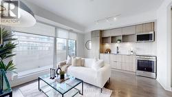 Welcome to Canary Block Condominiums, where contemporary design meets urban convenience. This spacious 2-bedroom + den, 2-bathroom unit offers a thoughtfully designed open-concept layout, perfect for modern living. Floor-to-ceiling windows flood the space with natural light, highlighting the sleek finishes throughout. The modern kitchen features built-in stainless steel appliances and a stylish backsplash, seamlessly flowing into the combined living and dining area. The primary bedroom boasts a 3-piece ensuite, while the second bedroom and versatile den provide ample space for guests or a home office. Residents enjoy access to premium amenities, including a fitness centre, party room, concierge service, and an outdoor terrace. Located just steps from the YMCA, waterfront, Distillery District, and Corktown Common Park, with easy access to the DVP and Gardiner Expressway, this home offers the perfect blend of lifestyle and location. Don't miss the opportunity to own a piece of one of Toronto's most desirable communities. (id:27)