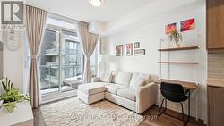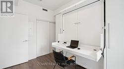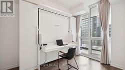 Welcome to The Peak at Emerald City, offering unbeatable walkability in the heart of Don Mills & Sheppard. Just steps to Fairview Mall and the TTC subway, with a grocery store and restaurants conveniently located on the building's retail level. Enjoy quick access to Highways 404, DVP, and 401, plus a community center and park directly across the street. This stylish 1-bedroom suite features 9' ceilings, a spacious balcony, and contemporary finishes. A custom built-in Murphy bed transforms into a sleek home office, complete with integrated power outlets, LED lighting, and storage cabinetry. Resort-style amenities include indoor pool, hot tub, fitness center, saunas, concierge, guest suites, dining room, residents' lounge, games room, outdoor patio & BBQ area. Includes 1 parking space and 1 locker. Stainless steel built-in appliances and front-load laundry. (id:27)