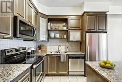 500 Sherbourne Street is an impressive 34-storey luxury condominium, completed by Times Group in 2010, and ideally located at the corner of Lourdes Lane and Sherbourne Street in St. James Town-one of central Toronto's most rapidly evolving neighbourhoods. Enjoy exceptional walkability to the shops and restaurants of Cabbagetown, Church Street Village, and Yonge & Bloor, along with convenient access to TTC Sherbourne Station (Line 2) and TTC Bus Route 75. Nature lovers will appreciate nearby Riverdale Farm, Rosedale Valley, and the scenic Lower Don River trails, perfect for hiking and cycling. This well-appointed suite offers approximately 668 square feet of interior living space, plus a 50-square-foot northwest-facing balcony with charming views overlooking the historic Our Lady of Lourdes Church. The functional layout features one bedroom plus den, one four-piece bathroom, hardwood flooring throughout, and above-average 10-foot ceilings that enhance the open and airy feel. The open-concept kitchen is equipped with granite countertops, stainless steel appliances, a centre island, and flows seamlessly into the living area, which walks out directly to the balcony-ideal for both everyday living and entertaining. Residents enjoy an impressive selection of building amenities, including a fully equipped fitness centre, fifth-floor rooftop patio with BBQs and lounge seating, 24-hour concierge and security, billiards and games room, theatre, party room, business centre/meeting room, and guest suites. One parking space is included, completing this exceptional offering in a prime downtown location. (id:27)