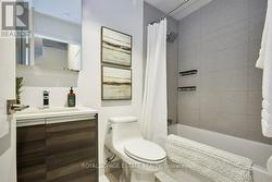 Welcome to The Carlaw - an impeccably designed condo-loft that offers a bright, efficient footprint and the perfect entry point into Leslieville. This suite features 9-foot exposed concrete ceilings, floor-to-ceiling windows, and engineered hardwood throughout an open-concept layout optimized for modern living. The sleek kitchen boasts integrated appliances, quartz countertops, and under-cabinet lighting, while practical details like a proper entry hall closet and a separate laundry room with extra storage enhance the home's daily functionality. Step outside to your private, covered balcony - equipped with a Gas BBQ hookup-offering year-round usability and a quiet escape. Residents enjoy premium amenities including a 24-hour concierge, a fully equipped gym, and a rooftop terrace with breathtaking city skyline sunsets. With Piano Piano and Crow's Theatre at your doorstep, and the best shops and cafes of Riverside and Leslieville are just a short stroll away, this location offers a completely walkable lifestyle in one of Toronto's most coveted pockets. (id:27)