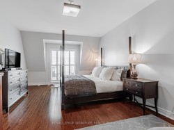 Welcome to this stunning executive freehold townhome that blends contemporary design with everyday comfort. Behind its stylish brick and stone exterior, you'll find over 2,000 sq. ft. of thoughtfully crafted living space and a rare oversized tandem garage with room for two vehicles. Step inside and discover a bright, open layout with soaring ceilings, large windows, and sleek finishes throughout. The main floor is designed for connection and entertaining a spacious living and dining area centered around a cozy fireplace, flowing into a modern chefs kitchen with stainless steel appliances, a gas range, granite counters, and a generous island with seating. From here, walk out to a large deck complete with a gas hookup, perfect for al fresco dining and summer gatherings. Upstairs, two generously sized bedrooms share a full 4-piece bath, while a dedicated laundry room adds convenience. The entire third floor is reserved for the private primary retreat a light-filled suite with its own balcony, a walk-in closet with custom organizers, and a spa-inspired ensuite featuring double sinks, a deep soaker tub, and a glass shower. The entry level offers a flexible bonus room, ideal for a home office, studio, or guest space, complete with its own powder room and direct access to the garage. Set in the heart of vibrant Mimico, this home offers the best of city living with a neighbourhood feel. Explore scenic waterfront trails, parks, and marinas just minutes from your door, or enjoy the shops, cafes, and local restaurants along Royal York and Lake Shore Boulevard. Top-rated schools, community centres, and playgrounds make this a fantastic spot for families, while commuters will love the quick access to the Mimico GO Station, Gardiner Expressway, QEW, and 427 downtown Toronto is less than 20 minutes away. Stylish, functional, and ideally located. POTL fee is $244.85 monthly and includes landscaping and snow removal.