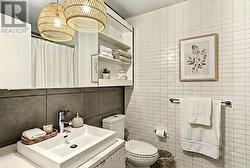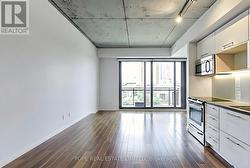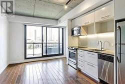Architectural excellence by acclaimed Saucier + Perotte Architectes in collaboration with Urban Capital and Waterfront Toronto. Completed in 2013, River City Phase 1 is ideally located on the lower east side of downtown within the sought-after Corktown and West Don Lands communities. Exceptionally well connected to Riverside, Leslieville, the Distillery District, St. Lawrence Market, Corktown Commons, Don River Valley Park, Toronto's Waterfront Trail system, and the DVP. TTC 504 King streetcar at your doorstep. Modern loft-style suite offering approximately 523 sq ft of highly functional interior space plus a generous 54 sq ft northwest-facing balcony with views of a nearby park, King Street, and the city skyline. Features include 9-foot exposed concrete ceilings, exposed galvanized ductwork, and stylish walnut flooring throughout. Contemporary white kitchen with stainless steel appliances and grey quartz countertops. Spa-inspired fully tiled bathroom with soaker tub, large vanity, mirrored cabinet, and convenient ensuite laundry. Outstanding building amenities include 24-hour concierge, fully equipped fitness centre, two spacious party rooms with lounge, bar, kitchen, dining area, and billiards table, guest suite, outdoor swimming pool, sun deck, and BBQ area. One storage locker and two bike racks included. (id:27)