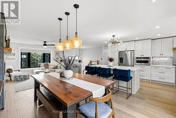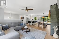Nestled on a generously-sized, mature lot in the highly sought neighbourhood of Glen Acres, this beautifully renovated, 3 + 2 bedroom, raised bungalow offers a spacious layout, top-of-the-line finishes, and thoughtful design. As you step through the front door, you are immediately greeted by a light-filled, open-concept living area that seamlessly blends the kitchen, dining, and living rooms into one welcoming space. Sleek glass railings provide an elegant touch to the stairway and the brand-new kitchen, features sleek, contemporary design elements and functional style. A large central island serves as both a statement piece and a hub for family gatherings and casual meals. The kitchen boasts high-end built-in appliances, offering both functionality and elegance. The open floor plan allows the kitchen to flow effortlessly into the dining and living areas, where you'll find a built-in fireplace and large picture window. This home features three spacious bedrooms and 2 fully renovated bathrooms w/heated flooring on the main floor while the lower level offers additional space for your family to spread out and enjoy. Here you'll find a cozy rec room, 4th bedroom, full bathroom, gym/flex place, and large laundry room/mudroom with convenient access to the garage. Sitting on a large, mature lot, the home offers plenty of outdoor space to relax, entertain, or simply enjoy the privacy this property offers. Surrounded by lush greenery, mature trees, and a sense of tranquility, its the perfect balance of privacy and nature. Within close proximity to schools, parks, community centres, shopping, dining, nature trails and all the amenities Uxbridge has to offer. Small town charm with all the conveniences of modern living. *House has been updated from top to bottom all windows & doors, hardwood & vinyl throughout, brand new kitchen, new appliances, all bathrooms renovated w/heated flooring. 2 fireplaces, stairs & railings, light fixtures, deck, blown in attic insulation. (id:27)