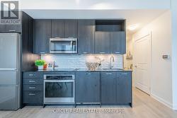 Welcome to The Mackenzie, where luxury living meets unparalleled convenience! This 1-bedroom, 1-den, and 2-bathroom unit redefines urban living with seamless connectivity. Commuting is a breeze with easy access to The Maple GO Station and Vaughan Metropolitan Centre, whisking you to downtown Toronto in just 45 minutes. Proximity to highways 400, 401, and 407 ensures a quick route to Pearson.Step inside this meticulously crafted unit featuring smooth finished ceilings and 7 1/2"-wide laminate flooring that elegantly extends through the living room, dining room, den, bedroom, hall, and foyer. Sliding closet doors and contemporary interior doors with chrome lever hardware add a touch of sophistication. Revel in the airy ambiance with 9' floor-to-ceiling heights. Enjoy the modern amenities of manual roller shade and pre-wired telephone units. (id:27)
