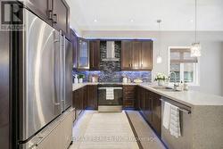 Welcome to this beautifully maintained and thoughtfully designed home offering exceptional space, versatility, and income potential. The main level features rich hardwood flooring, elegant crown moulding, and oversized windows that create a bright, welcoming atmosphere ideal for everyday living and entertaining. The chef-inspired kitchen offers full-height cabinetry, stainless steel appliances, a modern tile backsplash, generous counter space, and a large centre island with a double sink-perfect for hosting and family life. Open-concept living and dining areas provide excellent flow and natural light throughout. A wood staircase with carpet runner leads to the upper level, where the bedrooms are comfortably finished with wall-to-wall carpeting, offering warmth and quiet retreat spaces. The spacious primary bedroom features a walk-in closet and a spa-like ensuite complete with a soaker tub, a separate glass shower, and an extended vanity. Additional bedrooms are well-sized and versatile for family, guests, or home office uses. Bonus: A fully finished walk-up basement apartment with separate entrance, featuring an open living area, kitchen, bedroom space, bathroom, and laundry-ideal for extended family, in-laws, guests, or potential rental income. The exterior is equally impressive with professionally installed stone walkways, a welcoming front porch with glass railings, and a private fenced yard complete with a pergola and detached storage shed, perfect for seasonal storage, bikes, tools, or outdoor equipment. Located minutes from parks, schools, shopping, dining, transit, and major commuter routes, this prime Vellore Village location offers the perfect balance of suburban tranquility and urban convenience. A rare opportunity on a desirable crescent-this is a home that truly works for today's lifestyle. (id:27)