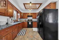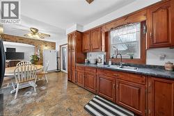 A true 'blink and you'll miss it' hidden gem on a 0.5 acre parcel has hit the market! Tucked under the towering pines that border the property, this all brick 3 bedroom+2 bathroom bungalow is awaiting you to make it your own. Extremely attractive layout, with an open concept kitchen/dining/and living room combo. The bedrooms were all thoughtfully placed a generous distance from the common area. Perfect for young kids with early bed times, or a home office that needs some privacy! The kitchen highlights a very functional footprint with ample cabinetry, pantry, replacement vinyl window('23) overlooking the backyard, a skylight inviting the natural light indoors, and sightlines through the dining room to the cozy carpeted living room, framed by a beautiful arched brick wall and showcasing a natural gas fireplace + large window. Desirable main floor laundry/mud room with storage, a wash tub, access to the partially finished basement and a side door to the deck. From the dining room, use the sliding doors to enjoy your south facing 3 seasons sun room. The bright and tidy main bathroom has been fully updated, offering vinyl flooring, and a large jetted tub with therapy lighting! All 3 sizable bedrooms have closet organizers, and replacement vinyl windows ('23). The lower level has a spacious finished rec room and 3 piece bathroom. Other features include the generac generator, large storage room, basement waterproofing, front porch, a second driveway hugging the east side of the property, 100 amp break panel, 2 sump pumps, central vac, 2nd fridge, 2 storage sheds on the property, parking for 6+ cars, and so much more! (id:27)