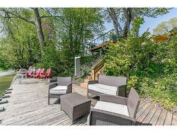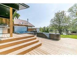 Yes, 1359 Mosley is located on a lively main road, but don’t let that fool you. The real magic happens out back! Step beyond the front door and you're instantly transported to your own private paradise on the Nottawasaga River with direct access to Georgian Bay. Paddle out from your backyard, soak in the views, or unwind in the hot tub under the stars. While the front offers the convenience of being close to everything, the back delivers tranquility, adventure, and true waterfront living. It really is the best of both worlds.Inside, the open-concept layout has a coastal vibe with gorgeous hardwood floors. The living area features a custom shiplap gas fireplace, perfect for cozy nights, while the walkout from the main floor opens to a covered deck ideal for BBQs and entertaining. The stylish two-tone kitchen, designed by Granite Works, showcases granite countertops, a peninsula with seating for two, glass cabinets with crown molding, and pull-out corner organizers. A large kitchen window captures breathtaking views of the backyard and river.In 2020, a loft addition created a private primary suite with clear Nottawasaga River views. The loft includes a spacious bedroom with crown molding, a custom walk-in closet, and a 4-piece ensuite with matte black hardware, a subway-tiled vanity and shower with honeycomb tile, and glass doors.With five bedrooms in total, this home offers plenty of space for family and guests. Two bedrooms are located on the lower level, which has a cozy cottage feel with a gas fireplace, 3-piece bathroom, dry bar, and pool table area (pool table negotiable).Step outside to an entertainer’s dream backyard featuring a large viewing deck with glass railing, a 6-person saltwater hot tub, a covered cabana, and a 2-bedroom bunkie with tiki bar. This exceptional property perfectly blends convenience and peaceful waterfront living, offering the ultimate Wasaga Beach experience.