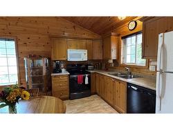 Located in the popular Lakes of Wasaga resort community, this charming year-round home offers 856 square feet of living space, including a bright two-season sunroom. The community provides a resort lifestyle with access to tennis courts, mini golf, pools, and children’s play areas. Inside, the home features two bedrooms and a three-piece bathroom with a newly updated sink backsplash. The spare room includes a built-in Murphy bed and desk, providing a flexible option for guests or a home office. The open-concept living room, dining room, and kitchen showcase cathedral pine ceilings and walls, creating a warm, inviting atmosphere. Convenience is enhanced with a stacked washer and dryer. Additional highlights include an in-ground irrigation system, generous-sized shed, and freshly stained front and back decks as well as the sunroom floor. A new AC unit was installed in May 2025. The backyard features a fire pit, perfect for relaxing evenings. The home also offers a four-foot crawl space with ample storage, housing the furnace and hot water heater. A paved driveway provides parking for three vehicles. From here, it’s just a short walk along two dedicated paths to New Wasaga Beach. Monthly fee of $772.01 (on leased land) includes property taxes, lease fee, maintenance.