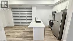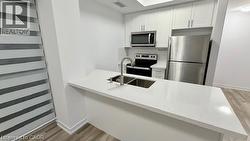 Welcome to this stunning 10th-floor unit in the highly sought-after Trend 3 community! Step into a bright and inviting 2-bedroom, condo. The open concept layout seamlessly connects the modern kitchen and living area, featuring brand-new stainless steel appliances, a stylish breakfast bar with quartz counter tops, and direct access to your private balcony w/exposure to two sides. A well-appointed 4-piece bathroom and the convenience of in-suite laundry complete this thoughtfully designed space. Enjoy a lifestyle of comfort and convenience with exceptional building amenities, including vibrant party rooms, a state of the art fitness center, scenic roof top patios, and secure bike storage. Located in the heart of Waterdown, this home features effortless access to top-rated dining, shopping, schools, and picturesque parks. Included with the unit is 1 owned surface parking space and an owned locker for extra storage. Experience contemporary living at its finest in this exceptional condo (id:27)