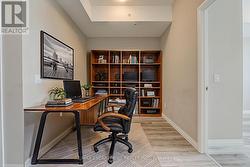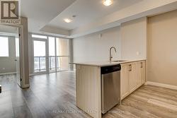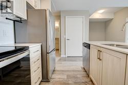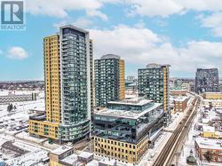 Located just steps to downtown Kitchener and the beautiful Victoria Park, this 1 bedroom plus den condo at 108 Garment Street offers a welcoming place to settle into city living. Completed in 2022, the unit features a practical layout and a kitchen that truly anchors the space.Upgraded appliances and cabinetry, a double sink, dishwasher, and generous counter space make it easy to cook at home, while the extra-long peninsula comfortably seats three to four-ideal for casual meals or hosting friends. The living area flows easily from the kitchen and opens to a private west-facing balcony, offering a quiet place to unwind in the afternoon and evening. The den adds valuable flexibility, working equally well as a home office, extra storage, or cozy reading nook. The bedroom is comfortably sized, and the unit is completed by a contemporary bathroom and the convenience of in-suite laundry. Indoor garage parking for one vehicle and a storage locker are included with the unit. Residents also enjoy access to a well-equipped fitness room, yoga space, party room, and an outdoor terrace featuring a pool, basketball court, BBQ area, and plenty of seating for gathering with friends. Ample visitor parking next door makes hosting easy. With shops, transit, dining, and the tech district just outside your door, this home offers an easy, low-maintenance lifestyle in a central location. (id:27)