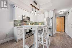 Welcome to 15 Prince Albert Blvd Unit 104-a stylish and modern 1 Bedroom + Den condo offering EXCEPTIONAL COMFORT, ANDCONVENIENCE. Located on the main floor, this unit provides easy access along with an open concept, CONTEMPORARY LIVING SPACE you'll lovecoming home to. Inside, enjoy 2 full bathrooms, including a 3-piece ensuite with a sleek glass shower enclosure, plus a separate 4-piece secondbathroom-PERFECT FOR GUESTS OR A ROOMMATE. The spacious den features a barn door enclosure and a full closet, making it ideal as anoffice or guest space. The MODERN KITCHEN IS DESIGNED TO IMPRESS, featuring white cabinetry, a grey tile backsplash, quartz countertops,and stainless appliances. In-suite laundry adds everyday convenience. ENJOY YOUR OWN PRIVATE PATIO, PERFECT FOR RELAXING. The buildingoffers a FITNESS CENTRE AND PARTY ROOM RIGHT OUTSIDE YOUR DOOR on the main floor. With GEOTHERMAL HEATING AND COOLING, eachunit is separately metered for ENERGY-EFFICIENT, COST-EFFECTIVE LIVING. 1 underground parking spot and a storage locker are included.Enjoy a PRIME LOCATION steps from parks, the Google office, UW's School of Pharmacy, and the lively amenities of Downtown Kitchener and ashort commute to Uptown Waterloo along with the VIA Rail train station nearby for easy commuting. Move-in ready and beautifully appointed,Unit 104 is the perfect blend of style, function, and location. Don't miss your chance to make it yours! (id:7525)