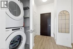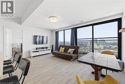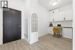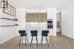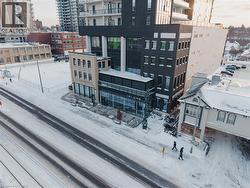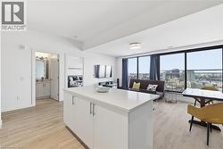 Experience Uptown Waterloo living at CIRCA 1877 with this bright, beautifully finished 825 sq ft 1 Bed + Den Unit 1505. This high floor unit is a great opportunity for young professionals, downsizers, investors, and first-time buyers who want style, walkability, and that “everything’s right here” lifestyle. Inside, the vibe is modern and airy with luxury vinyl plank flooring, open-concept layout, and high ceilings, including an approx. 16” taller ceiling height in the kitchen and den that makes the large condo floor plan feel even more grand. The kitchen brings the wow with dual-tone cabinetry, subway tile backsplash, panel fridge/freezer, wall oven, cooktop, quartz counters, and a matching island with breakfast bar, perfect for coffee mornings, quick meals, or hosting friends. Floor-to-ceiling windows pour in natural light and frame incredible views over Uptown. The den is perfectly for work-from-home thanks to custom built-ins and a desk. This unit also has a massive walk-in closet, stylish 3-piece bath with glass shower, and stacked in-suite laundry. You also get owned titled parking (#86) and an owned locker (#71). Amenities here are next level: rooftop terrace & sky-view pool, BBQ + fire tables, co-working lounge, entertainment lounge, fitness studio, indoor/outdoor yoga, bike room, and building-wide WiFi. Step outside and you’re truly in the heart of Uptown surrounded by boutique shopping, cafés, restaurants, patios, and nightlife, with Vincenzo’s just a short stroll away. Catch Uptown events throughout the year, meet friends for a night out and in the winter enjoy skating at Waterloo Public Square, all minutes from your front door. Add in ION LRT access, the Iron Horse Trail for biking, and the hospital nearby, and you’ve got a rare combination of lifestyle and convenience. Short-term rentals are permitted for this unit (per condo declaration) and the building does not require a city rental license a standout advantage in an unbeatable Uptown location. (id:27)