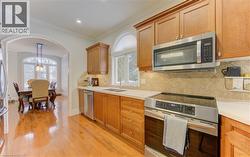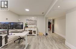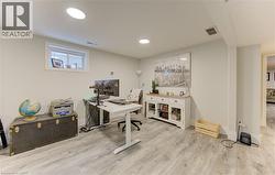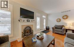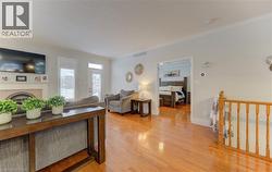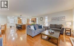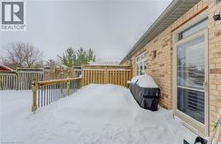 Waterloo bungalow townhouse with NO CONDO FEES backing onto Forwell Park! This carpet-free, approx. 1,300 sq ft home is ideal for empty nesters or first-time buyers and offers no rear neighbours. Open-concept main floor with hardwood floors, 9-ft ceilings, gas fireplace, and a separate dining room that can double as a home office. Kitchen features granite counters, island with breakfast bar, maple cabinetry, plus an updated countertop, added peninsula, and extra storage. Walk out to a private deck and fenced yard overlooking the park. Spacious primary bedroom with hardwood floors, two double closets, and a fully renovated ensuite with heated floors. Finished basement with rec room, two bedrooms, upgraded 3-pc bath, and good storage, accessed by hardwood stairs. Updates include new flooring with added subfloor in lower level, upgraded bathrooms, new insulated garage door, enlarged baseboards, new shingles (2019), owned water softener (2022), owned hot water heater (2025), and furnace control board replaced (2026). Gas BBQ line and central vac included. Move-in ready, extensively updated, and a rare no-fee opportunity in a prime Waterloo location. (id:27)
