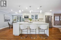 Executive end-unit townhome in Waterloo’s prestigious Beechwood community. Welcome to 259 Old Post Road, a rare opportunity to own a premium end-unit residence in an exclusive enclave of just 18 homes, set within approximately four acres of beautifully landscaped parkland. Residents enjoy access to a private clubhouse and inground pool, offering a quiet, upscale lifestyle in one of Waterloo’s most sought-after neighbourhoods. This spacious 4-bedroom, 4-bathroom home offers one of the largest and most versatile floor plans in the complex and has been thoughtfully updated throughout. The main level showcases a well-considered blend of hardwood, cork, and tile flooring, along with two gas fireplaces that anchor the living spaces. At the front of the home, a welcoming living room sits just off the upgraded kitchen and dining area—ideal for everyday living or hosting guests. The expansive rear family room features warm cork flooring, a second fireplace, and opens to a private landscaped courtyard, creating an inviting space for relaxation and entertaining. A convenient main-floor laundry room completes this level. The upper level features four generous bedrooms, including a spacious primary suite with ample closet space and an upgraded ensuite, along with additional well-appointed bathrooms designed for family and guest comfort. The fully finished lower level adds outstanding flexibility with a large multipurpose room, a recreation room, and a den with direct access to the double car garage—ideal for a home office, gym, or guest space. Additional highlights include laundry hookups, a spacious utility room, and numerous storage closets throughout the home. Rarely offered, this property includes a double car garage plus an additional outdoor parking space. Ideally located near scenic walking trails, top universities, the tech park, public transit, and mature parkland, this is a rare opportunity to secure a larger, upgraded end-unit in an established executive community. (id:27)