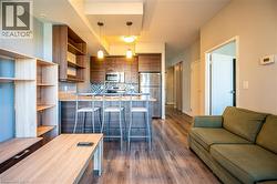 This stylish and convenient condo is in excellent condition, featuring a 1-bedroom plus 1 den layout with 2 bathrooms. The unit is carpet-free, offering a modern and clean living space. It boasts a spacious 10 ft ceiling that creates an open and airy atmosphere. The balcony seamlessly connects the living room and bedroom, providing easy access to fresh air and outdoor relaxation. The den is a versatile space that can serve as a home office or a temporary guest room, catering to different needs. The built-in laundry room adds to the convenience, making everyday living effortless. The condo is ideally located with shopping plazas and restaurants just steps away, ensuring you have everything you need at your fingertips. It is adjacent to the prestigious Waterloo Collegiate Institute (WCI) and offers close proximity to Laurier University, the University of Waterloo, and Conestoga College (Waterloo Campus), making it an excellent choice for families, professionals, or students. Don't miss the opportunity to own this bright and functional condo that perfectly balances comfort, style, and location. Contact us today for more details or to schedule a viewing! (id:27)