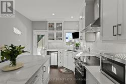Welcome to the raised bungalow you've been waiting for! Built in 2019 this home comes equipped with 5 bedrooms, 3 bathrooms and over 2600 square feet of living space. Situated in one of North Welland's most desirable neighbourhoods, you're just seconds from Niagara Street adding the convenience of nearby grocery stores, banks, restaurants, pharmacies, shopping, schools, parks, walking trails, and quick highway access to the entire Niagara Region. From the moment you arrive, pride of ownership is unmistakable. A manicured lawn, landscaped gardens, concrete driveway, and a striking stone-and-siding façade create an inviting first impression. The 1.5 garage includes a side entrance and direct walk-in access to the basement an ideal setup for those seeking in-law potential, rental income, or investment opportunities. Step inside to an open-concept main floor filled with natural light. Cathedral ceilings in the living and dining areas create a bright, spacious feel, while the modern kitchen shines with quartz countertops, a matching backsplash, stainless-steel vent hood, and a walkout to the backyard deck perfect for outdoor cooking and entertaining. The main level features three generously sized bedrooms, each with large closets, including a primary suite complete with a private 4-piece ensuite. Quality finishes are evident throughout: engineered hardwood flooring, pot lights, upgraded trim and hardware, double-pane Pollard windows, and an elegant oak staircase with steel spindles. The fully finished basement is an entertainers dream, offering 9-foot ceilings, oversized windows, a large recreation room, two additional bedrooms, a 3-piece bathroom with a tiled glass shower, plus storage, laundry, and utility space. This move-in ready home combines location, style, and functionality an incredible opportunity in North Welland! (id:27)