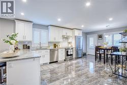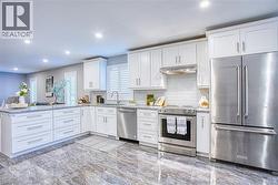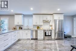 This wonderfully updated raised bungalow is located in a thoughtfully designed, newly developed neighbourhood that offers both modern appeal and a strong sense of community, offering three bedrooms and two bathrooms that seamlessly blend modern design with timeless comfort. Surrounded by other elegant homes, the property stands out with its striking solid grey stone exterior, creating exceptional curb appeal and a lasting first impression. Inside, every detail reflects high-end craftsmanship, from the sleek flooring and tasteful lighting and premium fixtures that elevate each room. The main level features a bright, airy living room, a stylish chefs kitchen with contemporary cabinetry and a walkout to a private covered porch perfect for morning coffee or evening gatherings, two spacious bedrooms, and a well-appointed three-piece bathroom designed with both beauty and practicality in mind. The lower level continues the sense of luxury with a generous third bedroom complete with a walk-in closet, a spa-inspired bathroom boasting a six-foot shower with dual showerheads and elegant double sinks, a convenient utility and laundry area, and clever under-stair storage. A separate walkout leads to the backyard, offering privacy and endless possibilities for outdoor enjoyment. With the added potential to convert the lower level into a private suite or duplex for extended family or rental income, this home combines elegance, functionality, and exceptional value. Set in a quiet, modern neighbourhood, it presents a rare opportunity to enjoy the benefits of new community living while indulging in a truly move-in-ready, beautifully upgraded residence. (id:27)