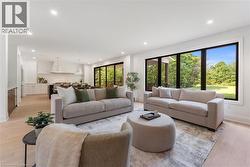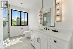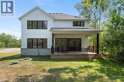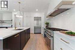 Experience the pinnacle of modern living at 81 Doans Ridge Road - an interior design gem offering 3,025 sq ft of refined space on a 60' x 200' lot. From the moment you step inside, the open-concept main floor sets the tone with soaring 9' ceilings, rich engineered hardwood, custom white oak wall paneling, in-ceiling speakers, and sun-filled windows. The chef's kitchen is a show stopper with a 48 Thermador gas range, 36 Thermador fridge, 8' island, and walk-in pantry-perfect for hosting. A main-floor office provides the ideal work from home setup. Step onto the 295 sq ft covered deck and soak in tranquil views. Upstairs, two bedrooms each offer private 3 piece ensuites and walk-in closets, while the 650 sq ft primary suite is a true retreat with vaulted ceilings, a fireplace, spa inspired ensuite, and walk-in closet. The basement features over 8' ceilings, a roughed in bath, and a garage to basement stairwell. Located minutes from the Welland canal, trails and major highways, this home delivers luxury, lifestyle, and location in one extraordinary package. (id:27)