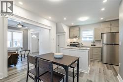 Welcome to 90 Margery Road, a beautifully renovated two-storey home in the heart of Welland, offering exceptional flexibility for homeowners and investors alike. Extensively updated in 2022, this property features both modern cosmetic upgrades and major big-ticket improvements, including enhanced insulation, new shingles, plumbing, and electrical. This 4-bedroom, 2-bathroom home offers a bright open-concept main floor with updated flooring, pot lights, custom blinds, and abundant natural light. The modern kitchen features premium countertops, white subway tile backsplash, sleek grey cabinetry, stainless steel appliances, and a functional island with a large sink. A formal dining area with an electric fireplace flows into the spacious living room, ideal for entertaining. The main floor includes a bedroom with built-in wardrobe and semi-ensuite access to a 3-piece bathroom with glass walk-in shower, offering in-law or secondary suite potential. Upstairs features three generous bedrooms, a second 3-piece bathroom, and a roughed-in kitchen, creating the opportunity to convert to a duplex or independent rental unit. Situated on a large lot with a covered front porch, private backyard, and one parking space. Conveniently located near schools, the Welland Canal, Highway 406, and Seaway Mall—perfect for first-time buyers, families, or investors seeking modern living with income potential. (id:27)