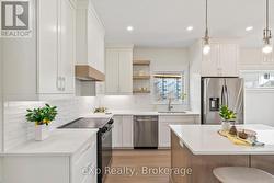 The perfect place to grow. A Candue custom build located on the outskirts of Mount Forest. Experience the perfect blend of modern design and rural tranquility in this newly completed 2-storey masterpiece by Candue Homes. Set on a quiet cul-de-sac, the home's stone-and-vinyl facade leads to an interior crafted for the modern family. The heart of the home is the stunning Barzotti kitchen, complete with quartz countertops, premium appliances, and a social island that flows into the dining area and out to the rear deck. The living room serves as a sophisticated focal point, featuring a fluted fireplace surround and custom built-in library nook. With three spacious bedrooms upstairs-including a primary retreat-plus a fully finished basement featuring a second fireplace and fourth bedroom, this home offers over three levels of luxury. Complete with a Tarion warranty, it's move-in ready and built to last. (id:27)