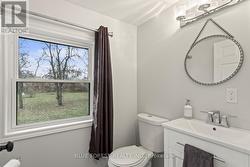 An easy commute to London this property sits on a large country style lot and has been completely renovated top to bottom. It features new drywall, insulation, electrical and plumbing and has a steel roof. A bright and cheery open concept features large windows, a vaulted ceiling and LED pot lighting throughout. The laundry and primary bedroom are on the main level and the bedroom has a four piece ensuite. Ideal home for one floor living. 2 good size bedrooms upstairs with their own 3 pce bathroom completes the picture. The house has a newer furnace and air conditioner as well as an owned tankless, on demand hot water heater. (id:27)