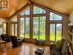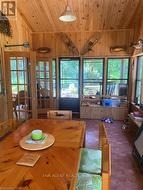 Located on a the South West Island shore of Sandy Island on Lake Nipissing, directly south of Sturgeon Falls. Family friendly, turnkey retreat with 200 feet of safe sandy beach. Just bring your bathing suit and food. Great for swimming, fishing and boating. Good docking. Walkable lot with blended forest (not rocky). Modern 3 bedroom insulated open concept cottage 1536 Sq. Ft. Sleeps 8 plus a bunky. 3 piece bathroom, utility room, large sun room/dining area, open kitchen and living room area with cathedral ceiling throughout and a large south facing deck. Propane appliances with hot water. Gravity fed water system. Generator. Approved legal septic. Sleep Cabin approx 280 square feet with ensuite bathroom and deck. Out house, fire wood, shed, workshop, storage shed. 20-25 minutes from Starlight Marina. A fantastic place for summer and winter is waiting for you! Opportunity for additional adjacent lot 24, 2.4 Acres, sand beach with a rock point - level building lot for second dwelling or for additional privacy. (id:27)