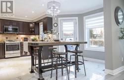 Welcome to 9 Sato St, Whitby, an elegant all-brick home with approximately 3,200 sq ft. plus a beautifully finished 1,400 sq ft basement in the desirable Williamsburg neighborhood. This four-bedroom home offers both sophistication and comfort, ideal for modern families seeking space and functionality. Step inside to find formal living and dining rooms, a cozy family room with a fireplace, and main floor laundry with direct garage access for convenience. The spacious kitchen features quality appliances, granite countertops, a deep double stainless-steel sink, and a walkout to the backyard-perfect for meal prep and entertaining. Upstairs, four generously sized bedrooms provide plenty of room, including a primary suite with a walk-in closet and a luxurious ensuite bath. The fully finished basement expands your living space with a recreation room and wet bar for hosting, a two-piece bath, dedicated gym area, and ample storage. Outside, enjoy the double car garage, fenced yard, and newer cedar deck, ideal for outdoor gatherings. All-brick construction ensures durability and timeless curb appeal, complemented by a newer interlock driveway (no sidewalks to shovel), smooth ceilings with crown molding, and a variety of upgrades: R2000 energy rating, new attic insulation, furnace, AC, tankless water heater, HRV system, roof, and a 200 Amp panel. Interior finishes include porcelain tile, Canadian Maple hand-scraped hardwood on the main floor, and water-resistant German laminate upstairs. Additional features include custom zebra blinds and in-wall HDMI/ethernet connections. Families will love the proximity to Jack Miner Public School, widely praised for its strong academic standards and highly regarded Gifted Program. (id:27)