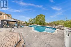 Absolutely Stunning Detached Home Situated In The Heart Of The Prestigious Williamsburg Neighbourhood, Boasting Over 3,000 Sq Ft Of Luxurious Living Space On A Rare And Serene Ravine Lot With A Spectacular Inground Pool, Double Waterfall Features, And Breathtaking Western Exposure For Sunset Views Plus This Family Home Perfectly Positioned Steps Away From The Iconic Rocketship Park Truly A Dream Location For Families! The Exterior Is Fully Landscaped With Stamped Concrete, Offering A Low-maintenance Lifestyle. Step Inside To An Inviting Open-concept Layout Enhanced By New Gleaming Hardwood Floors And An Upgraded Staircase. The Combined Living And Dining Areas Are Bathed In Natural Light From Oversized Windows. The Spacious Family Room Is Perfect For Entertaining Or Relaxing, Highlighted By Crown Moulding, Large Windows With Ravine Views, And A Coffered Ceiling That Adds Architectural Elegance. The Upgraded Kitchen With Stainless Steel Appliances, A Large Centre Island, Granite Countertops, Stylish Backsplash, And A Breakfast Area With Walk-out To The Elevated Deck Overlooking Your Backyard Paradise. Upstairs, You'll Find Five Spacious Bedrooms, Perfect For A Growing Family. The Primary Suite Offers A 5-piece Ensuite, Walk-in Closet, And Ravine Views. The 4th Bedroom Also Features Its Own 4-piece Ensuite And Walk-in Closet. The Remaining Bedrooms Are Spacious, Each With Large Windows And Ample Closet Space, Providing Comfort And Functionality For Everyone. The Fully Finished Walk-out Basement With A Separate Entrance Offers Endless Possibilities An Ideal Setup For Extended Family, Guests, Or Potential Rental Income. This Home Truly Has It All. Located Steps Away From Top-rated Schools Like Williamsburg Public, Parks, Shopping, Restaurants, Hwy 401, 412, And The Go Station. Truly A Forever Home. Property Was Previously Staged. (id:27)