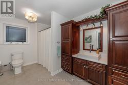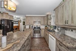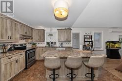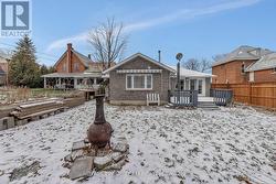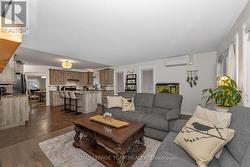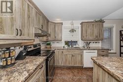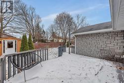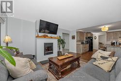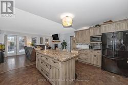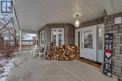 Beautiful Stone Bungalow with Lake Views & Exceptional Outdoor Living. Custom-built in 2007, this 1,734 sq. ft. stone bungalow perfectly blends charm with modern efficiency. Experience true "one-level living" featuring radiant heated floors throughout and a bright, airy layout flooded with natural light. At the heart of the home is an open-concept kitchen boasting a large centre island, abundant cabinetry, and a double sink-seamlessly flowing into a formal dining area designed for entertaining. The adjacent living room offers ultimate coziness with a WETT-certified wood-burning fireplace (new in 2025).The primary suite is a true retreat, featuring both a walk-in closet and a secondary closet with "cheater" access to the updated full bathroom, which shines with a new tub, custom tile, and solid wood cabinetry. Two additional spacious bedrooms provide plenty of room for family or a home office.The home features an oversized attached garage and wide driveway. A welcoming covered verandah offers peaceful views of the lake, while the partially fenced, private yard includes a large south-facing deck (18 x 17 ft)-perfect for relaxing or entertaining during the warmer months. Recent updates include new light fixtures throughout, added privacy fencing, and a newer heat pump for efficient heating and cooling. Enjoy the convenient location close to the beach, boat launch, restaurants, golf, and highway access. (id:27)