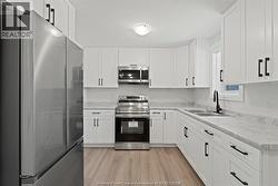 Spacious 3 bdrm 2 bath lower/main floor unit in approx 1 year old Raised Ranch style two unit building with modern decor located in newer desirable Meighen Heights Development three blocks west of Central Ave, a short walk to Windsor Assembly Plant. Features a large living and dining room, nice size kitchen with pantry, quartz counters and Stainless Steel appliances. Master bedroom has ensuite bath and walk-in clst. In suite Laundry. This is a must see! Walking distance to Ford Test Track Park, schools, churches and shopping. Only one block from public transit. This is a perfect family community in a great central location. Utilities are in addition to the rent. Call for you personal showing. (id:27)