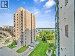 This spacious and bright 2-bedroom, 2-bathroom condominium is located in The Pinnacle boasting nearly 1200 sq ft , The pinnacle building one of Windsor’s most prestigious and highly sought-after buildings, recognized as one of the finest residences in the city. Set along the coveted Riverside Drive, the unit offers beautiful river views in a premier location. Directly across the street, a tranquil escape with its manicured grounds and the iconic Charles Brooks Peace Fountain floating on the Detroit River. The best of East Windsor’s amenities, dining, and everyday conveniences are all just moments away. The unit features a generous, well-appointed layout with in-suite laundry, updated flooring, fresh paint, and newer appliances included for added value. A private balcony showcases northeast-facing views of Windsor’s stunning riverfront—perfect for relaxing or entertaining. Residents of The Pinnacle enjoy an exceptional selection of amenities, including a fitness centre, indoor pool and sauna, meeting room, and secure underground parking complete with a car wash station. A rare opportunity to own a landmark building. Call today to book your private showing. SOME PHOTOS ARE VIRTUALLY STAGED (id:27)